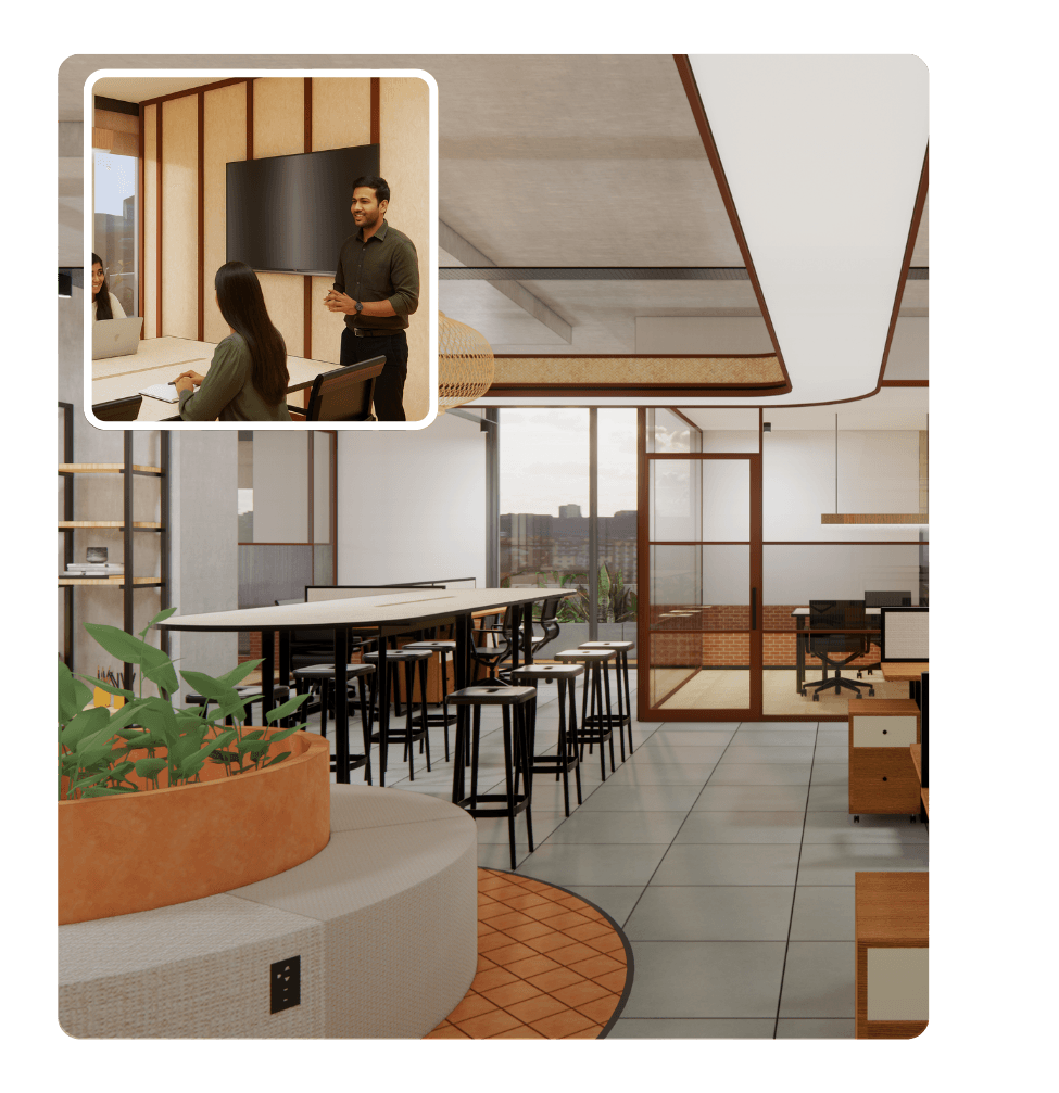 Dedicated zones crafted for efficiency and growth—featuring branded touchpoints, meeting rooms, and layouts designed for team connection.