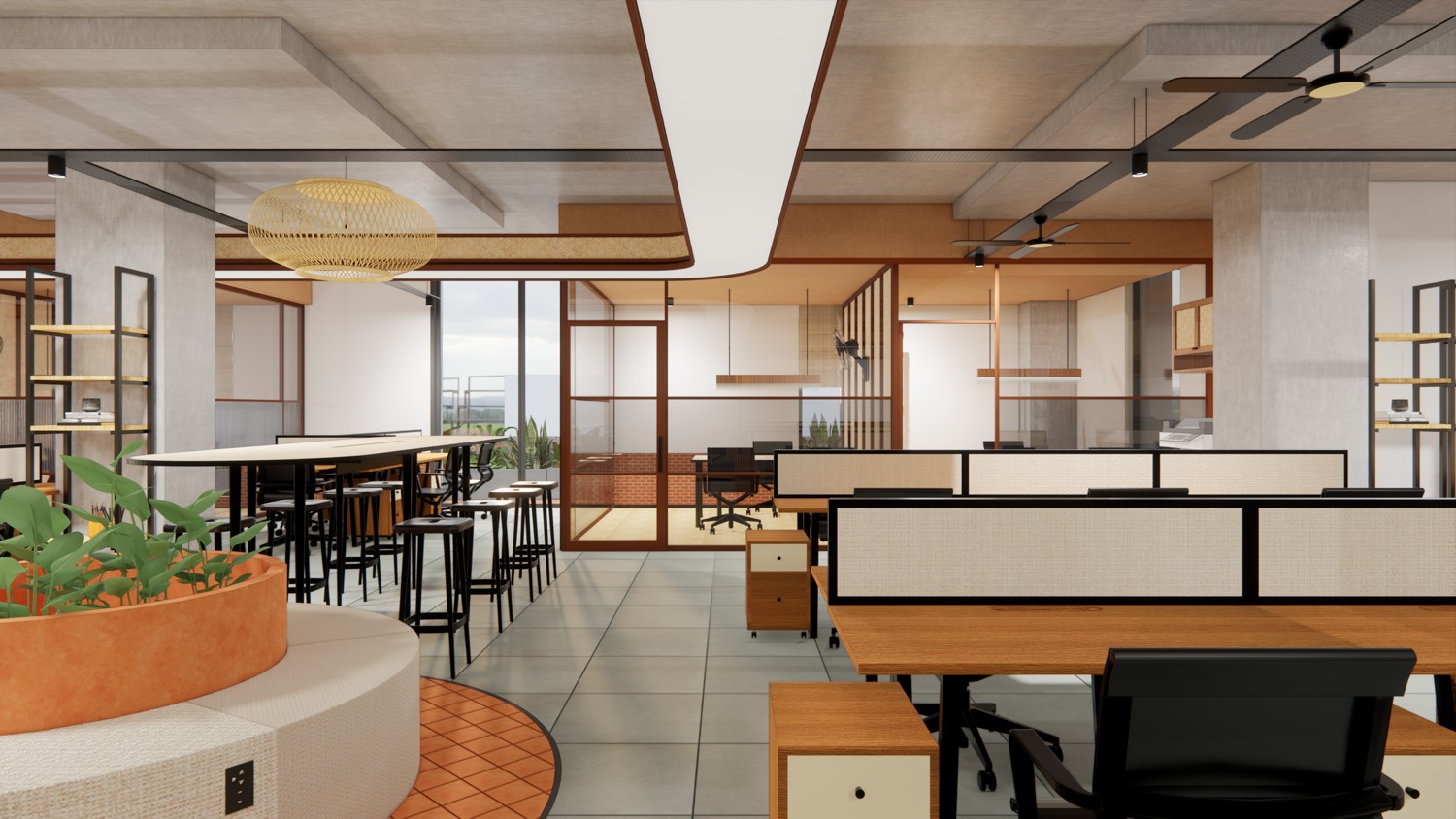 Private cabins, dedicated desks & breakout areas